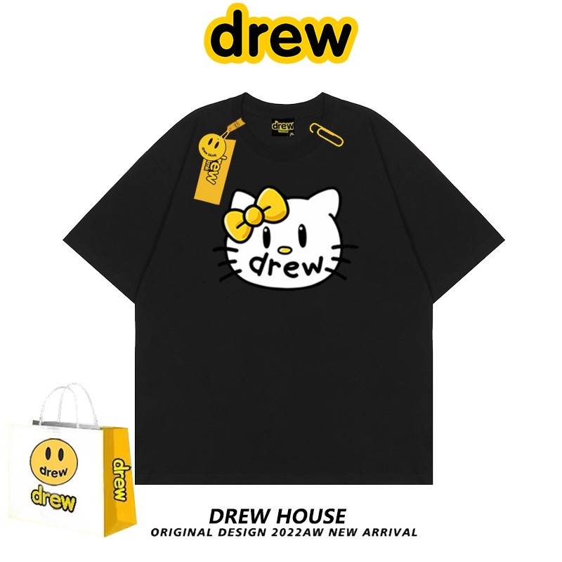 Drew笑脸潮牌Hello Kitty卡通印花短袖T恤男女学生宽松情侣装半袖
