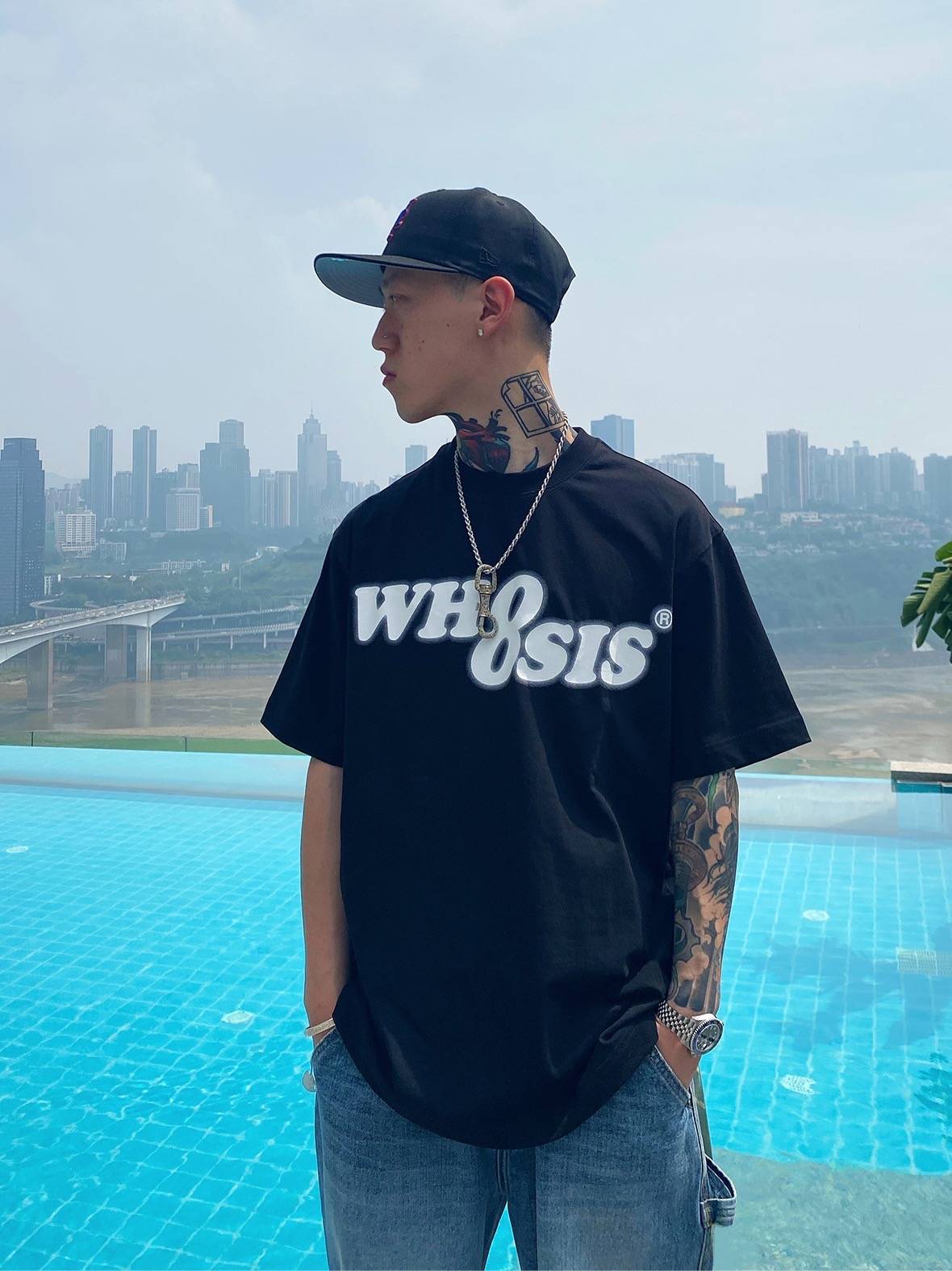 WHOOSIS(不知其名)幻影logo纯色t恤夏季打底宽松短袖潮牌男情侣