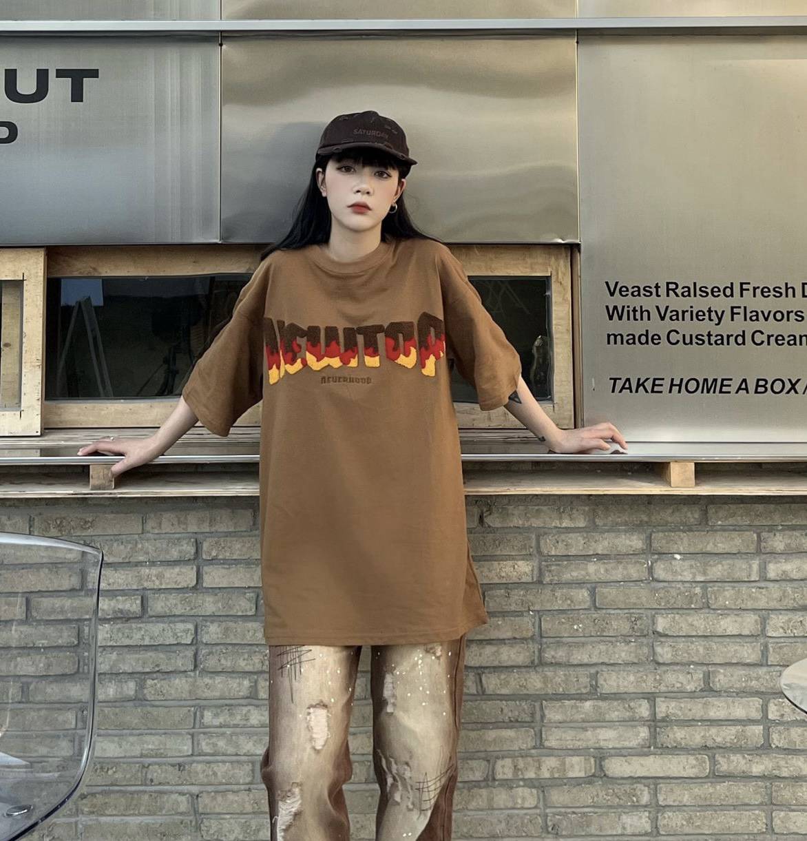 x不是好人 国潮原创火焰字母t恤女情侣宽松美式复古ins潮牌短袖潮