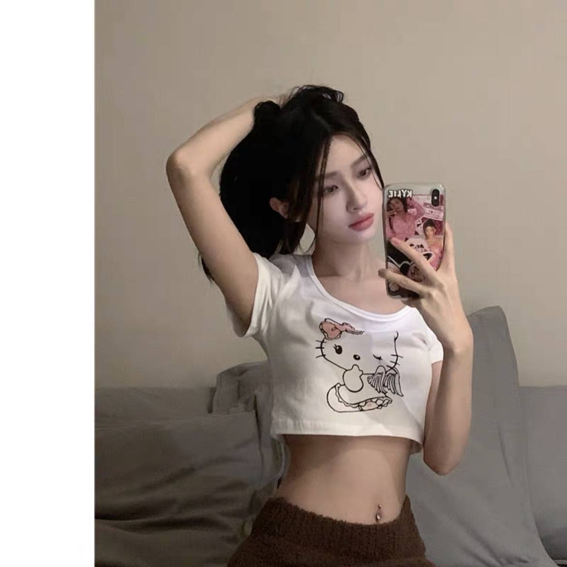 FRUITY奶欲小可爱猫咪短袖T恤女夏季百搭短款辣妹露脐装半袖上衣