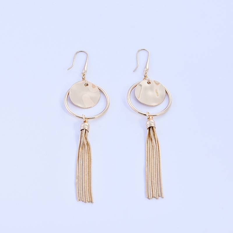 一件代发中长款气质流苏圆形耳环 圆脸显瘦耳饰配饰个性百搭饰品