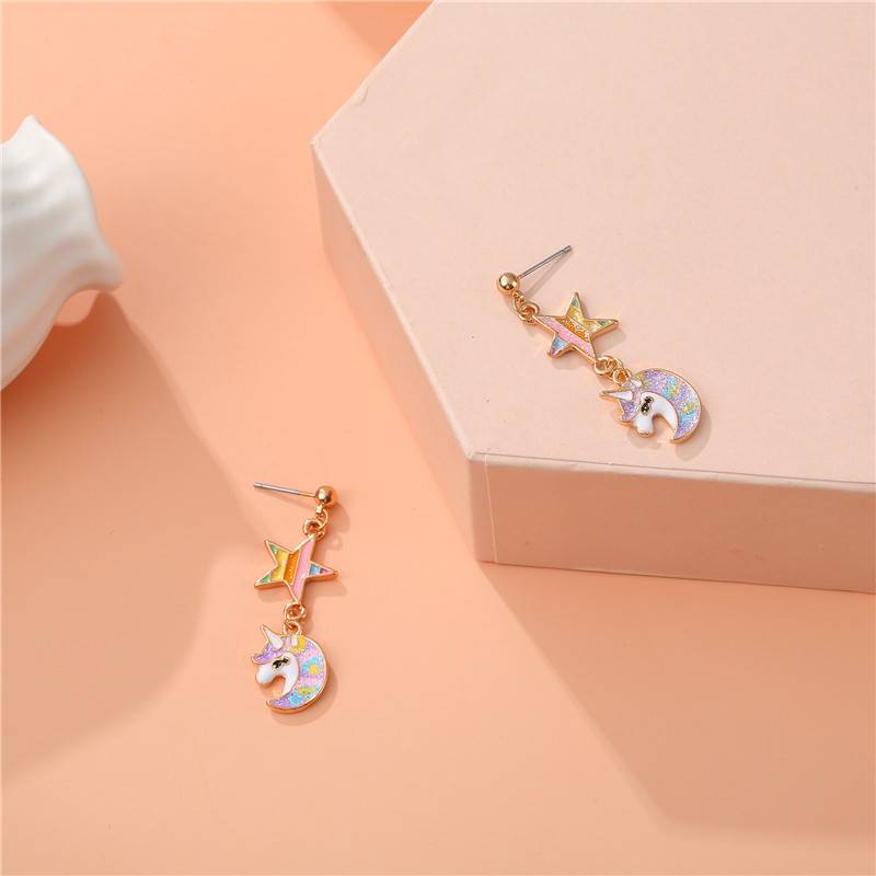 厂家货源韩版甜美流行儿童耳饰网红同款独角兽合金滴油耳钉耳环