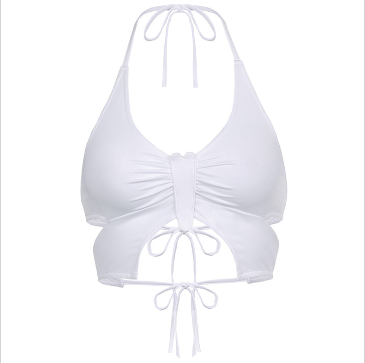 街头辣妹时尚外贸欧美女装蝴蝶挂脖系带修身露背吊带背心2021新款