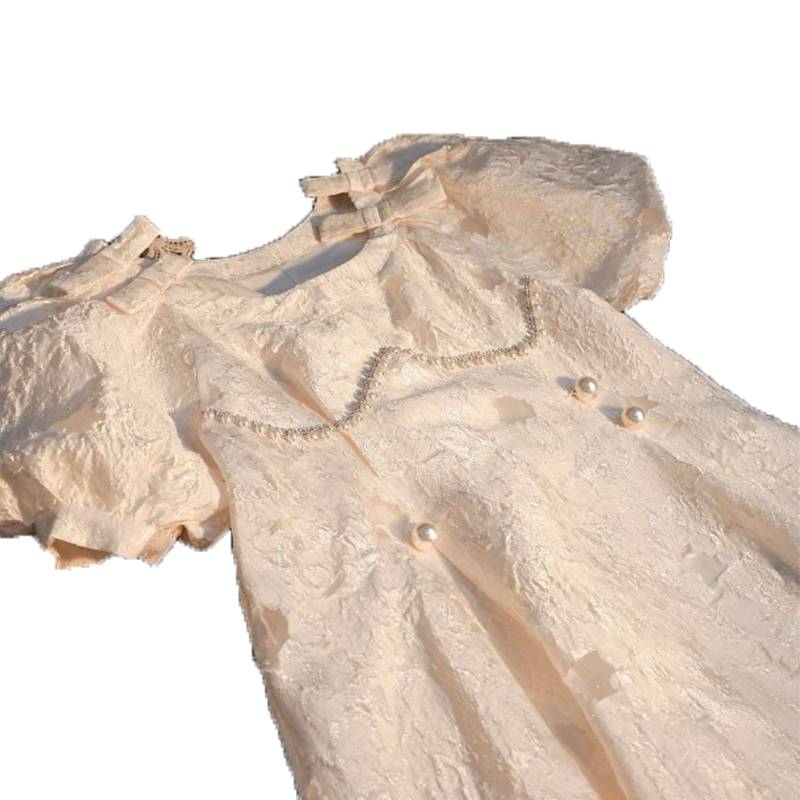 宫廷风裙子甜美白色泡泡袖连衣裙重工复古提花蓬蓬裙日系