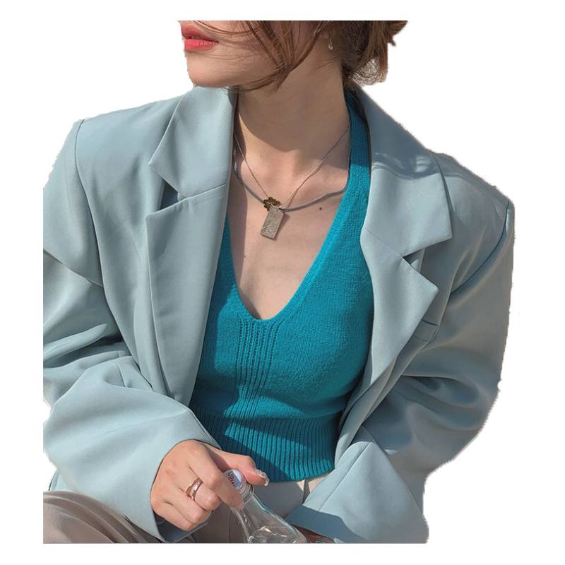 白水女2021夏季新款针织吊带背心辣妹挂脖外穿上衣性感女小心机