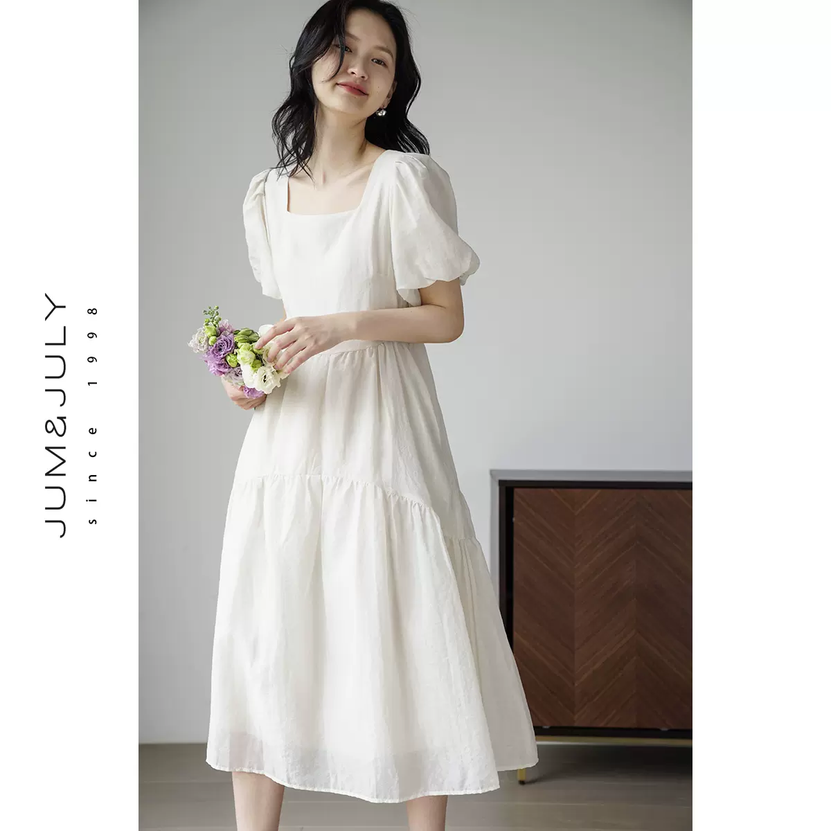 嘉茱莉2023新款法式气质连衣裙女夏初恋小个子设计感小众显瘦长裙