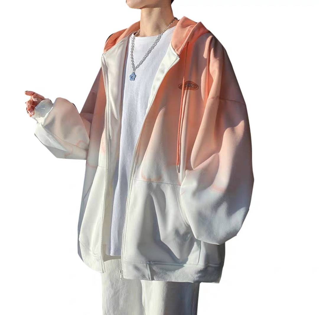 渐变开衫卫衣外套男女ins潮bf秋冬加绒宽松韩版连帽上衣情侣夹克