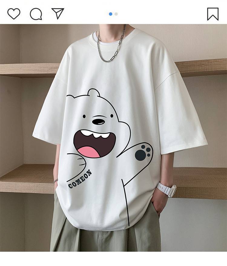 温柔系粉色小熊320g重磅短袖男2023新款情侣装纯棉t恤大码半截袖