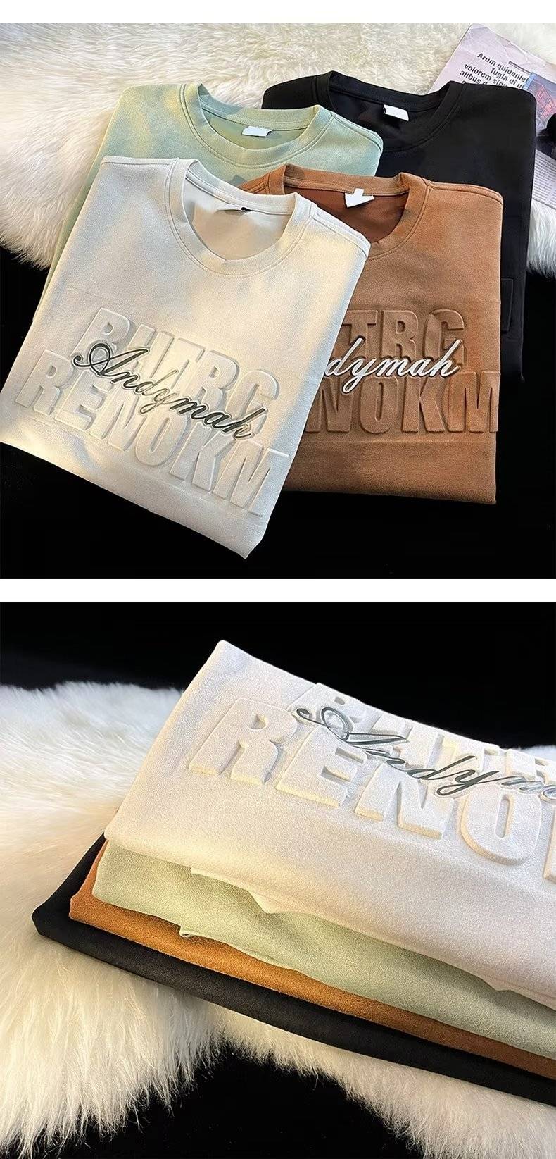 美式复古麂皮绒短袖t恤男夏季重磅潮牌oversize痞帅宽松半袖体恤