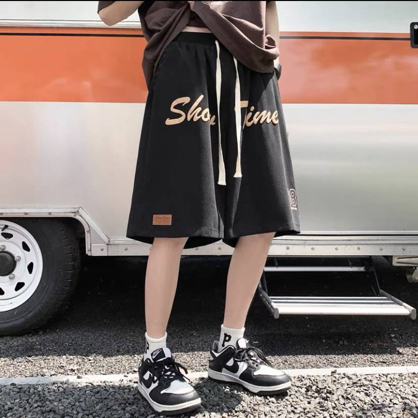 发泡印花运动短裤男夏季薄款美式复古高街ins潮牌宽松休闲五分裤5