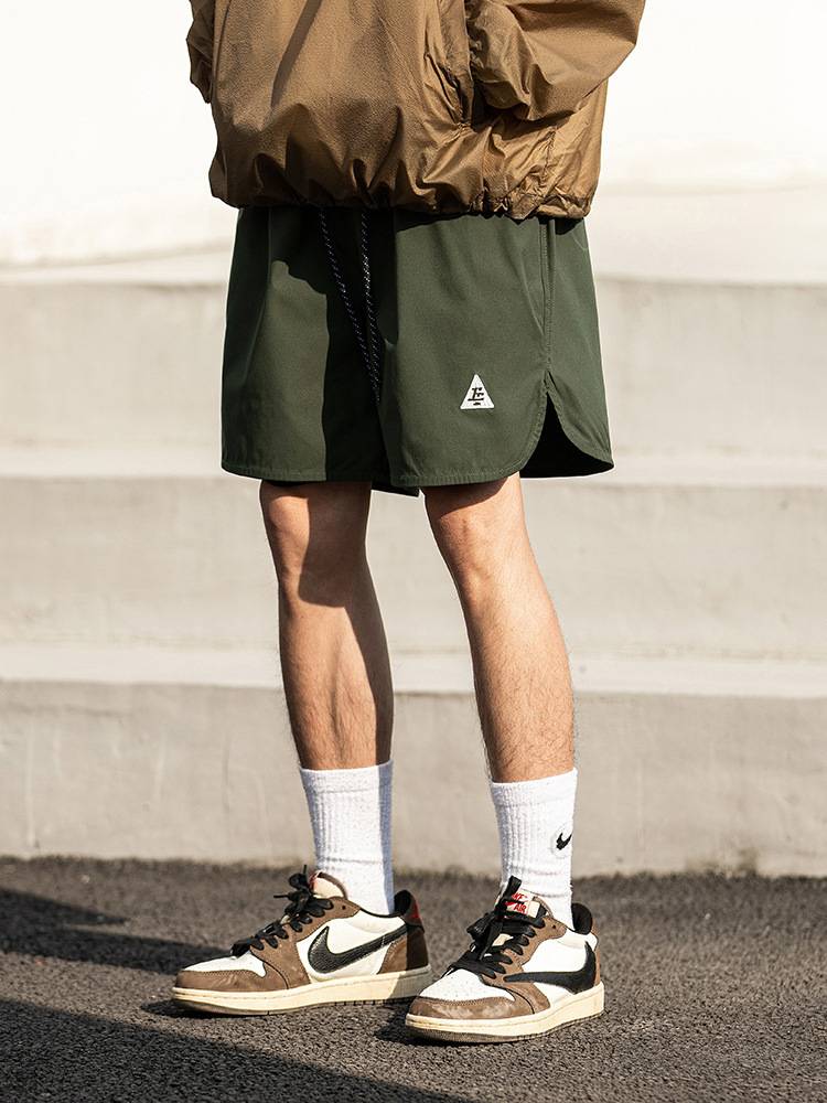 韩路男装宽松休闲短裤男下摆圆弧开叉设计机能美式刺绣运动五分裤