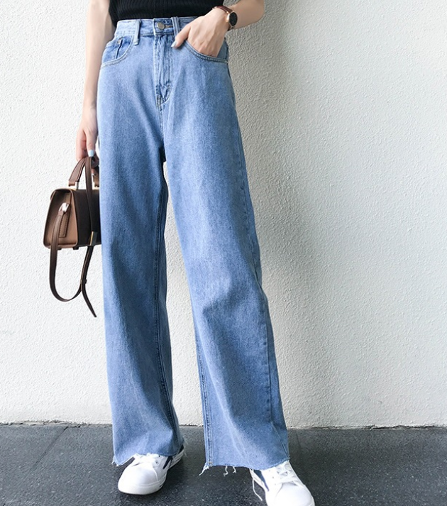2018新款休闲ulzzang高腰阔腿直通牛仔裤