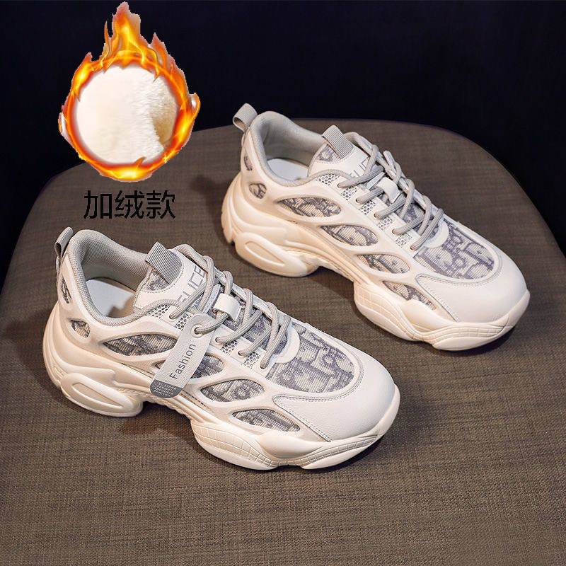 加绒老爹鞋女冬季新款女鞋厚底印花拼色网红运动鞋透气智熏鞋ins