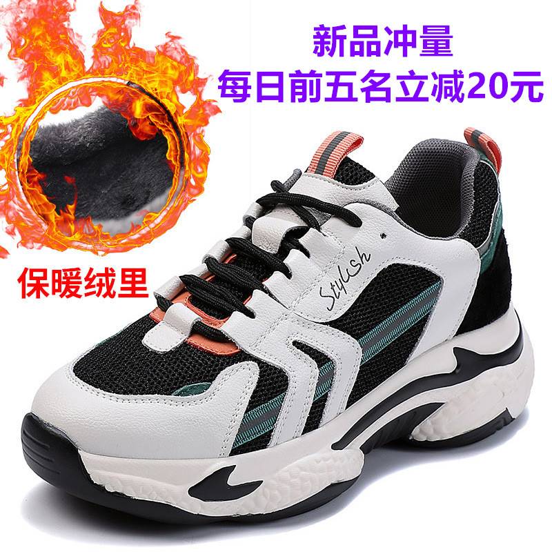 香港老爹鞋女运动休闲鞋ulzzang鞋子ins潮显脚小加绒轻便运动鞋冬