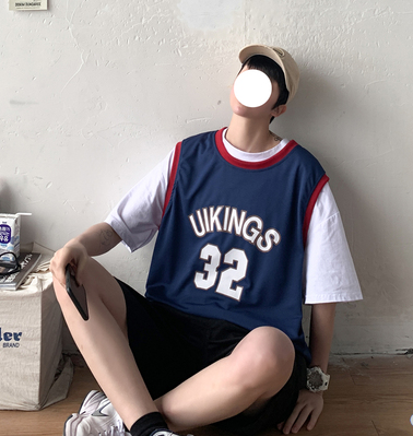 夏季字母印花宽松篮球背心男女情侣运动两件装T恤球衣