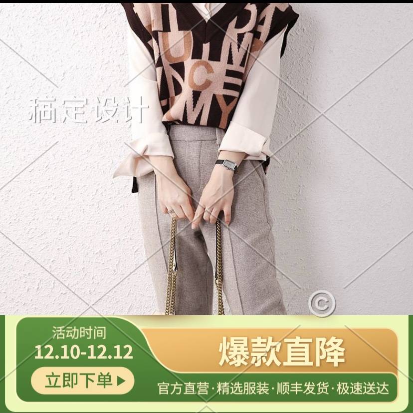 2021秋冬新款坎肩提花休闲背心欧美修身羊毛衣女套头针织马甲女