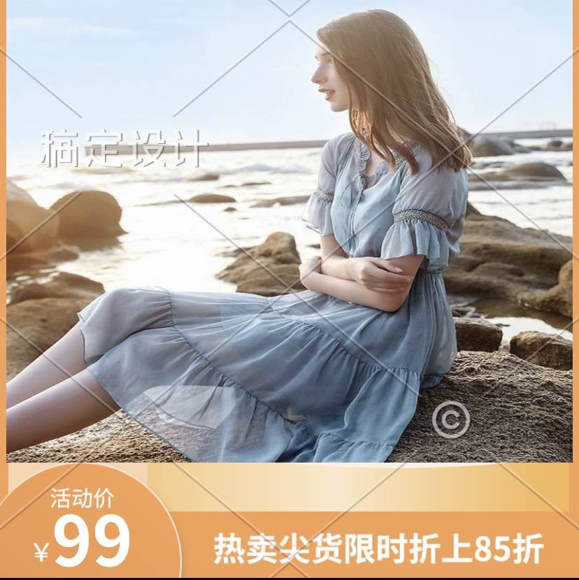 2021夏季新款品牌女装v领纯色拼接a字裙淑女显瘦雪纺连衣裙