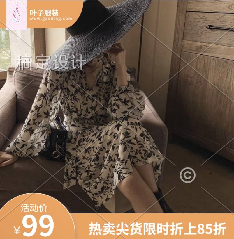 时尚名媛定制2021秋装印花雪纺连衣裙显瘦遮肉飘逸长裙女减龄气质