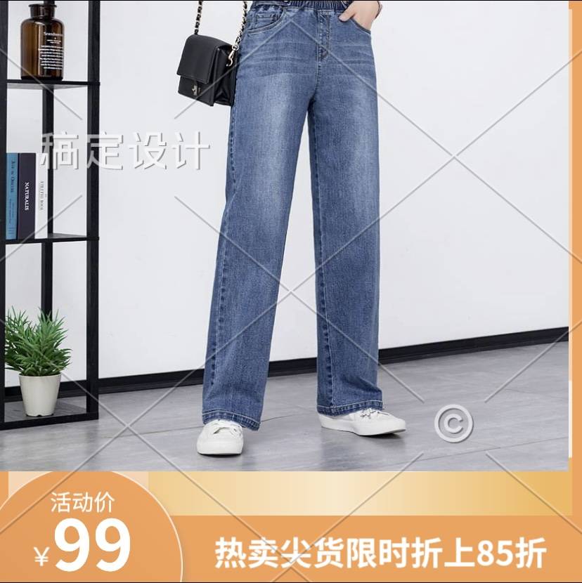 2021春夏新款批发松紧腰高腰牛仔裤女宽松直筒显瘦阔腿长裤