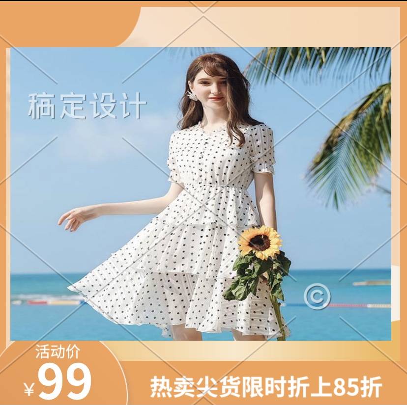 2021夏季新款品牌女装v领波点荷叶边裙气质轻熟雪纺连衣裙