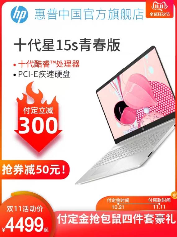 HP/惠普青春版十代酷睿i5 15.6英寸便携学生笔记本电脑轻薄本电脑