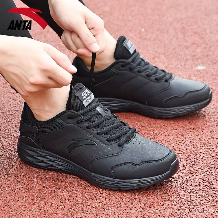 安踏运动鞋男鞋冬季新款官方正品黑色保暖男士防水皮面跑步鞋子男