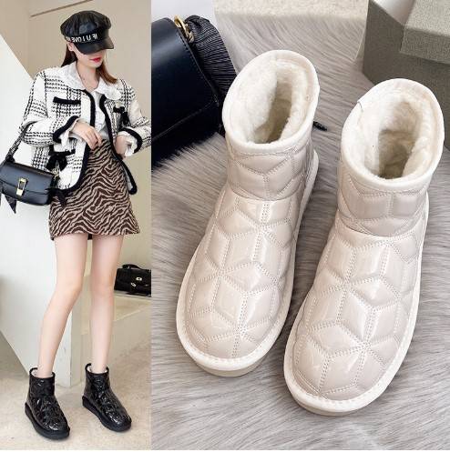 菱形方格雪地靴女2021冬季新款加厚保暖棉靴韩版时尚女鞋