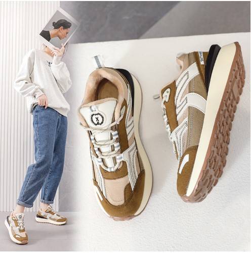运动鞋女款加绒棉2021年新款潮鞋秋冬休闲鞋女百搭华夫鞋厚底韩版