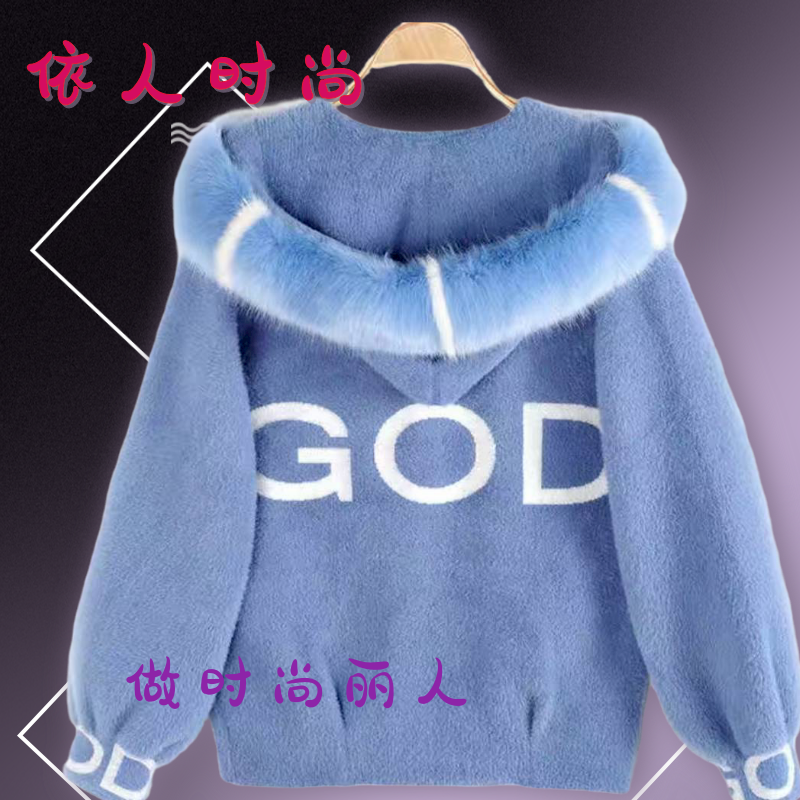 针织毛衣女秋冬新款女装撞色宽松长袖加厚V领开衫短款外套女