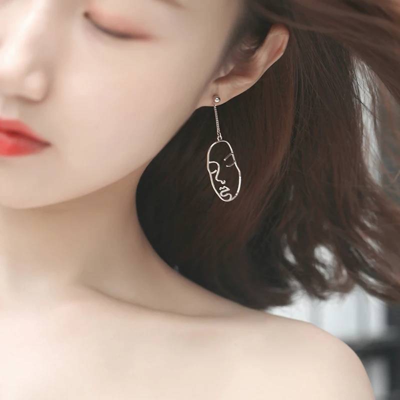 网红耳环女气质韩国个性潮人不对称人脸纯银耳钉百搭耳饰品耳坠女