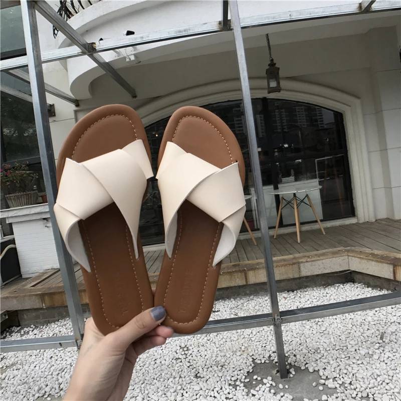 2018夏季新款韩版简约一字带露趾平底拖鞋女外穿时尚百搭沙滩鞋潮