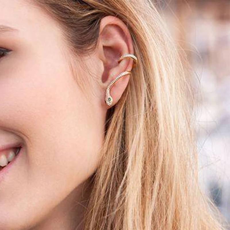 APM Monaco单只银镶晶钻蛇形银耳骨夹耳环