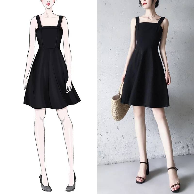 冷淡风连衣裙女夏装2018新款韩版时尚吊带极简收腰气质赫本小黑裙