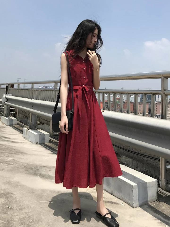 冷淡风连衣裙2018夏季新款女装韩版收腰显瘦无袖棉麻大码衬衫长裙