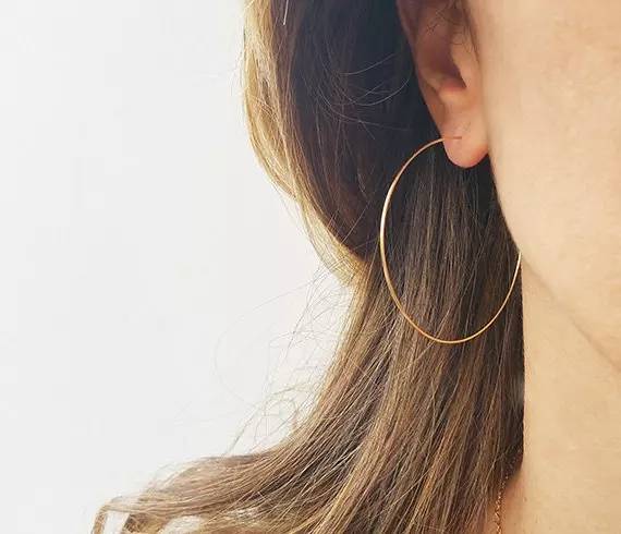 原创手工制作14K包金法式超细超轻圆圈耳圈925纯银耳环不掉色7cm