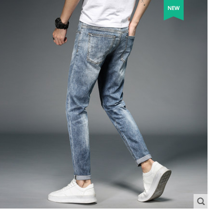 浅色牛仔裤男破洞九分裤修身韩版小脚裤男士夏季薄款潮流休闲裤子