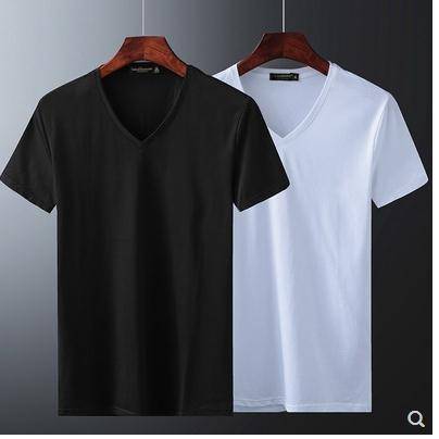 清仓短袖t恤V领夏潮新款纯棉纯色修身休闲打底男士体恤