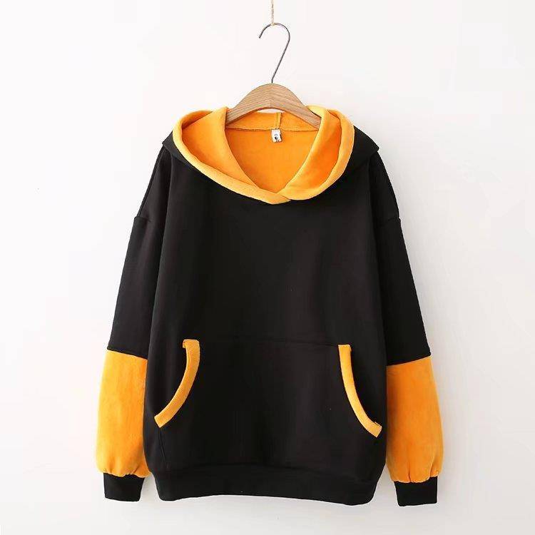 2018秋装新款女装加绒金丝绒连帽卫衣女宽松大码上衣 c6388