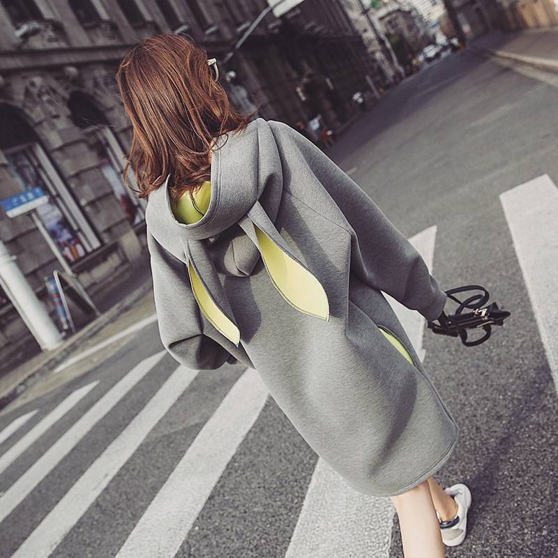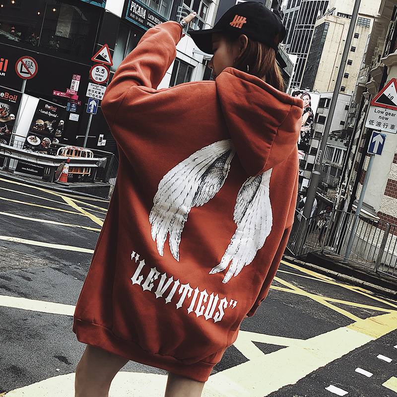 2018新款韩版宽松加绒加厚港风卫衣女连帽中长款翅膀bf外套