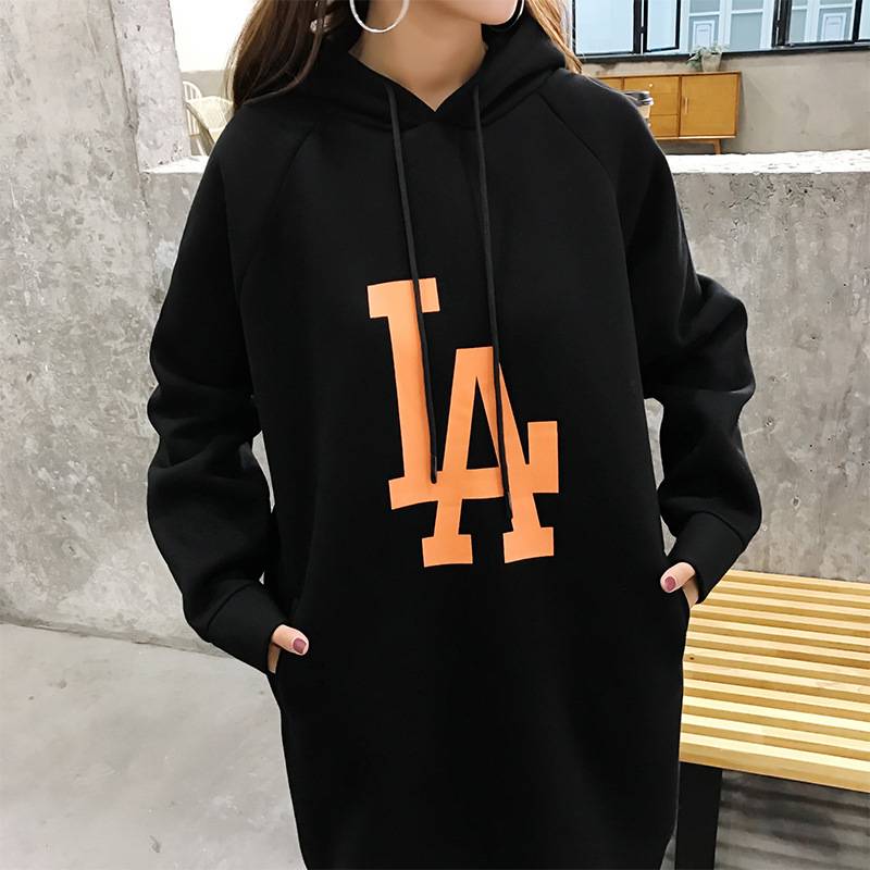 2018秋冬胖MM抓绒加厚中长款字母印花卫衣女带帽外套宽松上衣