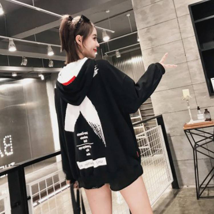 2018秋装新款韩版纯棉女式卫衣长袖连帽字母宽松女装外套厂家直销