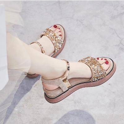 坡跟凉鞋女2018新款夏季学生百搭韩版厚底水钻松糕鞋罗马网红女鞋
