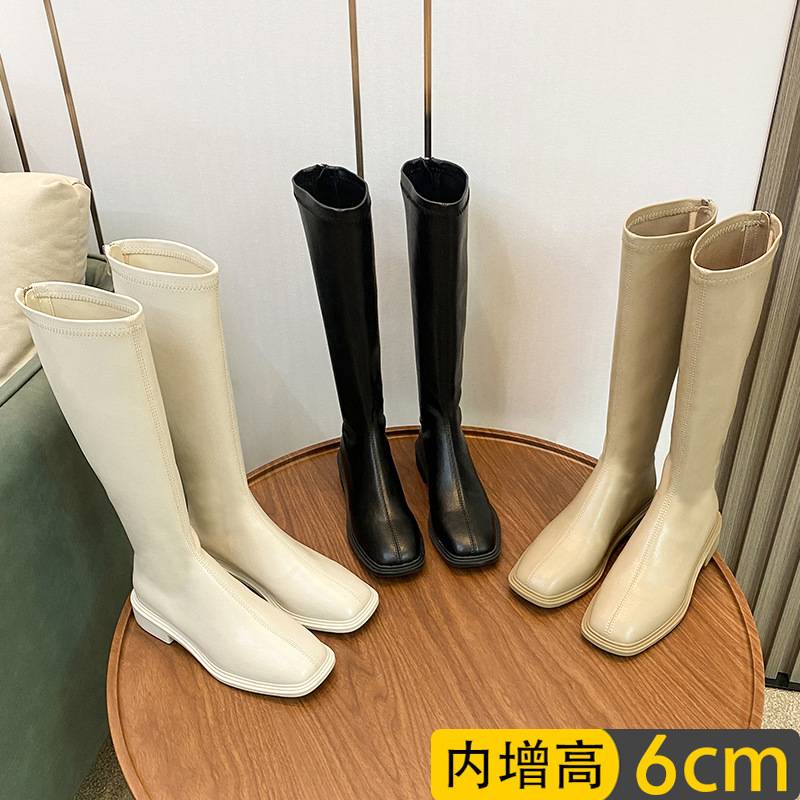 高筒靴女2021秋季新款骑士靴内增高后拉链简约长筒靴女大码