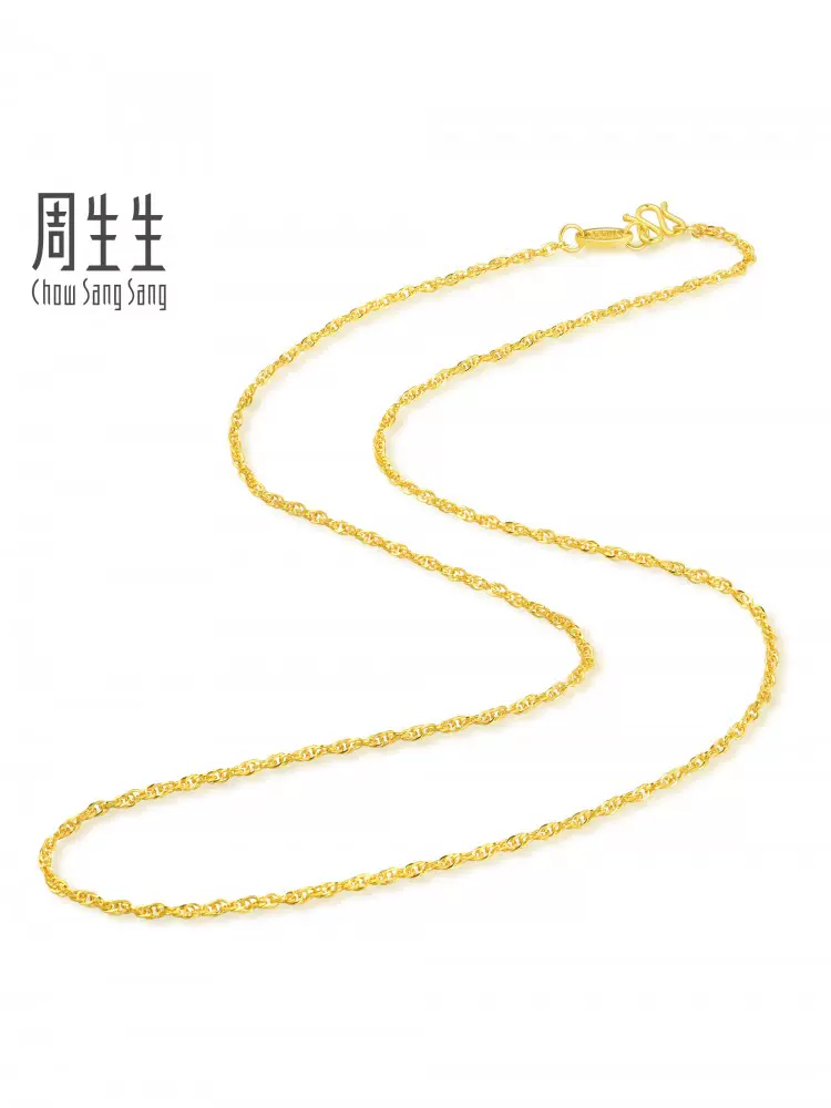 周生生水波纹黄金项链双扣足金项链男女款素链首饰礼物