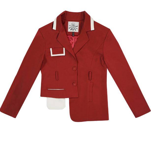 红色撞色不规则西装WANGREENxCHENCLEAN原创设计师WXC
