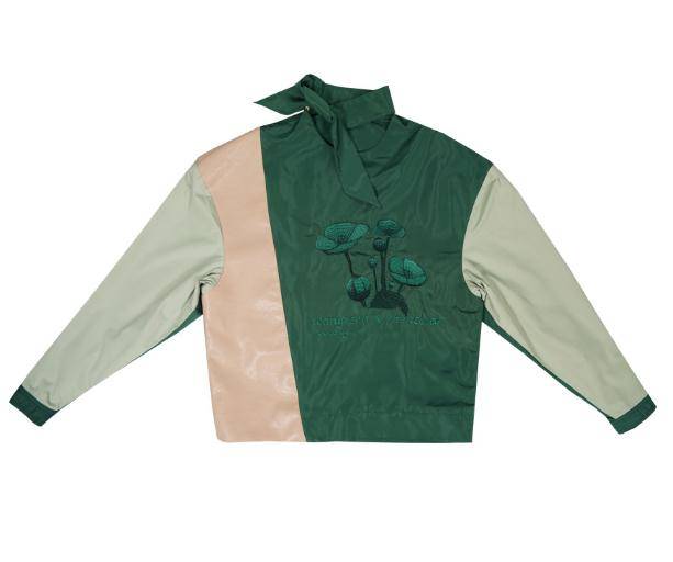 领结花朵刺绣风衣皮质拼接外套WANGREENxCHENCLEAN原创设计师WXC