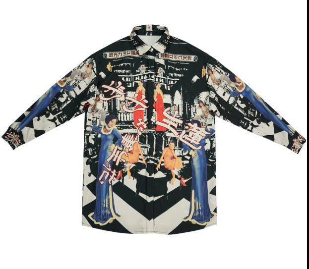 黑色印花长款衬衫WANGREENxCHENCLEAN原创设计师WXC