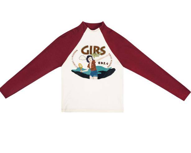 红色网球女子插肩长袖上衣WANGREENxCHENCLEAN原创设计师WXC