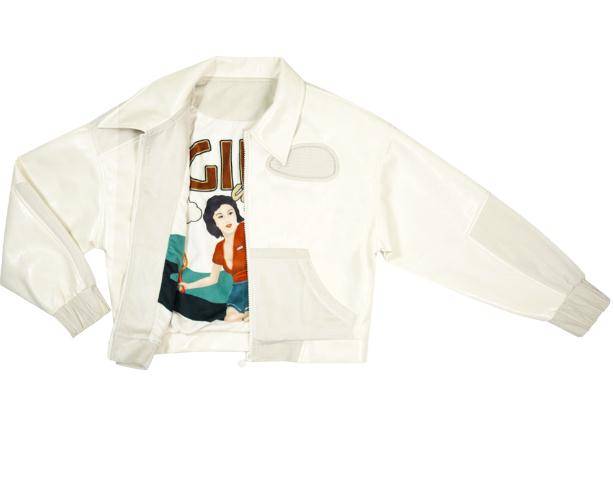 米色网球女子皮夹克WANGREENxCHENCLEAN原创设计师WXC