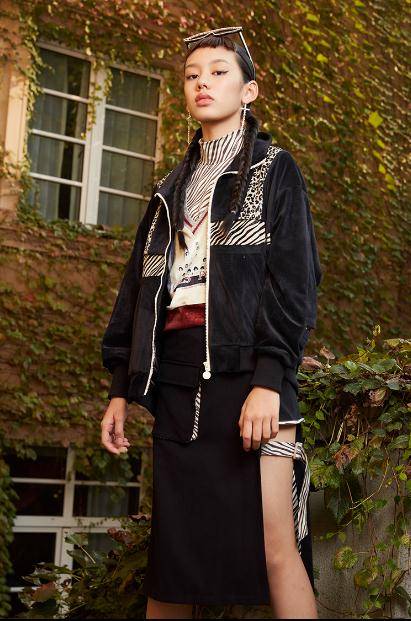 黑色斑马纹时髦女孩短卫衣WANGREENxCHENCLEAN原创设计师WXC